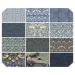 This 12-piece fat quarter bundle showcases rich blues and indigo tones from the Saturday Stash collection by The Original Morris & Co. Perfect for classic quilts, blue-themed decor, or timeless sewing projects.